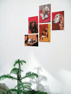 Selailin kuvakansioita ja löysin hauskan otoksen viime joululta. Meillä ei ollut perinteistä joulukuusta vaan näppärä huonekuusi. Vinkeet ovat myös kaverilta saadut vanhat koirakortit.