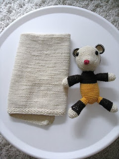 Itselläni ei juuri nuo puikot pysy käsissä, mutta onneksi on taitavia ystäviä olemassa. Mummilta V sai aivan ihanan neulepeitteen ja kaveri virkkasi veikeän uniystävän. Kastettiin se Liisaksi.