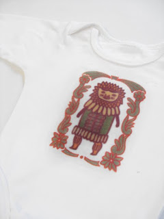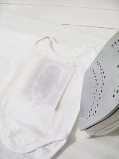 Tänään sain noudettua postista Amazonin kirjapaketin, kun se ei mahtunut tulemaan luukusta. Höh. Sieltä tulla tupsahti ihastuttavia SUKIE-kirjasia, toinen täynnä silityskuvia ja toinen boksillinen tarraetikettejä (niiden käytöstä sitten tulevaisuudessa). Heti miten täytyi tehdä yksi silityskokeilu. Kaapista löytyi kirpparilta ostettu valkoinen body, joka oli jo hitusen virttyny. Valikoin tuollaisen aika ison kuvan ja kiinnitin sen ekana nuppineuloilla etuosaan, tuo silityskuva kun ei ole sellainen kumimainen/tahmea, niin ei sitten luista pois silityksen aikana. 5 min kolmella pallolla ja avot, uusi unibody on valmis. Nuo silityskuvat toimivat siis niin, että arkeissa on värikuvat, joista kuumuus irrottaa värin vaatteeseen. Siihen ei siis jää sellaista perinteistä kumimaista silityskuvaa vaan enemmänkin itse tussilla maalatun näköistä jälkeä. Mitä huokoisempi kangas, sitä pehmeämpi kuva veikkaisin tämän kokeilun jälkeen. Hitusen skarpinmpaa olisin itse toivunut, mutta pitää koittaa napakampaan puuvillakassiin tai tyynyliinaan ja kassotaan sitten. Nyt unille uudessa yöpuvussa ja huomenna Habitareen. Hyvää yötä!