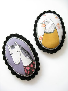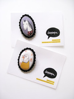 Tänään oli myös Posti-päivä, kun Espanjasta tilaamani Depeapan rintarossit saapuivat. Varpu sai tietenkin talvitakkiinsa tuon lintuaiheisen, äidille käy tuo koni. Korut olivat 12 e/kpl ja postareita tuli kahdelle korulle 4 e eli edullinen paketti. Ja laatu 10+. Thank you Verónica.