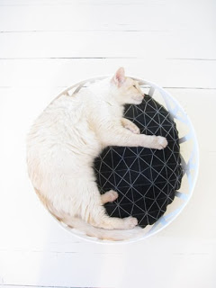 Voi saisinkohan meidänkin kissan innostumaan korista jossa on tyyny? Lattiatyyny ei kelpaa, mutta aina jos jätän jonkun korin lojumaan pöydille, neiti on käpertynyt sellaiseen. Hieno!