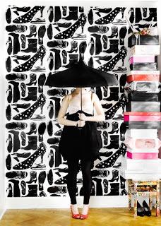 Vilkuilin Design Isabellan sivuja, siellä kun on nyt -10% kangasale Mairon uutuuksista. Kenkäkuosi tuntui tutulta ja hitusen lisää selviteltyäni löytyi tuttu nimi: Lisa Bengtsson. Tämä ruotsalainen kuvittajaneiti on kyllä taitava ja tyyli iskee minuun. Käyppä vilkasee hänen portfolio. Aiemmin kenkiä sai siis tapettina jostain, Mairon kangasta meillä myy Design Isabella.