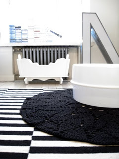 Vn pää on jo sen verran kopsahdellut lattiaan, että haemme sunnuntaina lainaan kaatuilukypärän. Tein myös pieniä turvajärjestelyjä kotona. Kiipeilyyn kutsuvan pöydän alle laitettiin toinen tosi paksu trikoomatto, joka nyt toivottavasti vaimentaa töyssyjä. Sänky näytti sen jälkeen hieman paljaalta (matto oli siis ennen sängyn päällä), joten yöllä piti puuhata uutta. Siitä seuraavassa postauksessa.