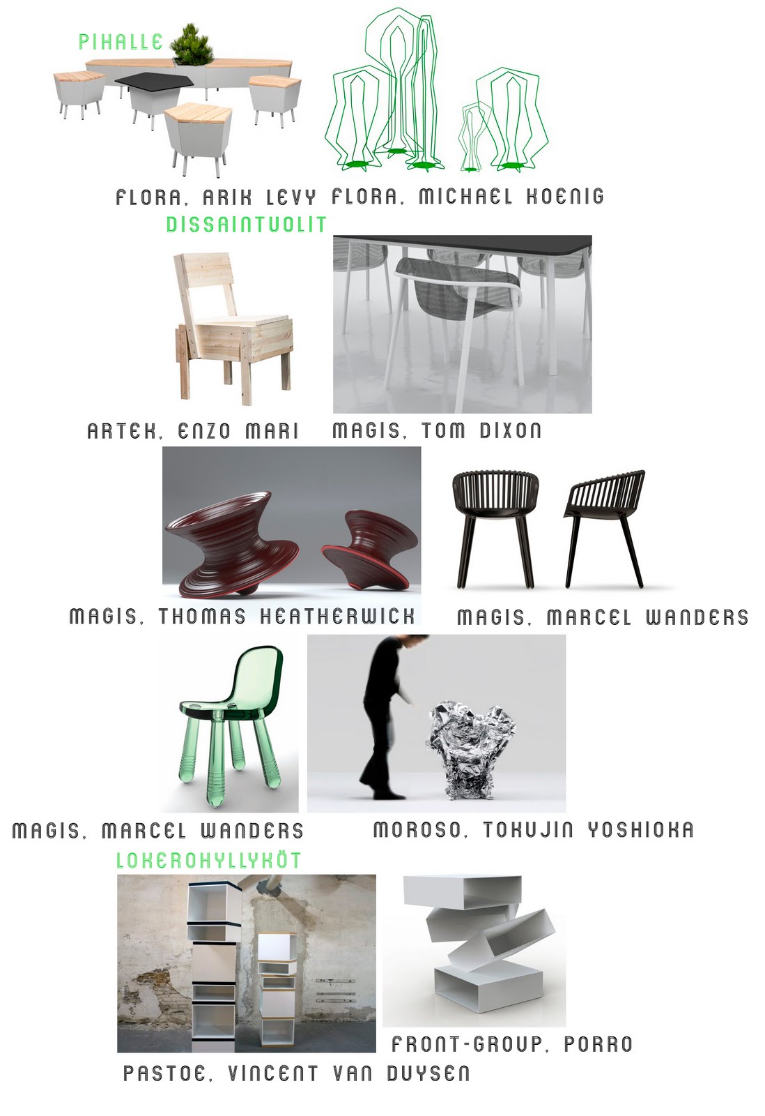 Nopealla vilkaisulla Patrician suunnittelemat matot GAN:lle ovat ehdottomasti jotakin. Foliotuolista en nyt sanois mitään ja Ikean Mammutti-lastenkalusteet ovat innoittaneet ihan isoja nimiä. Nuo on jotenkin uudenlaisia nuo pihakalusteet ja rautalanka “patsaat”. Enzo Mari on suunnitellut Artekille tuolin. Hienoa! Tulee mieleen ukin piharakennuksen nikkaroinnit.