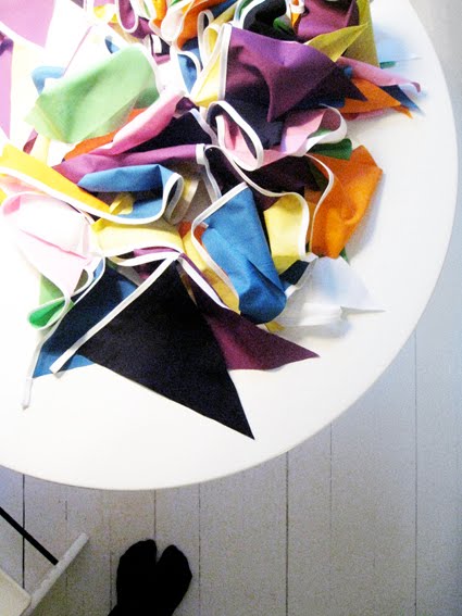 New Reeboks came yesterday (the second time). Thank god it’s easy to change at Brandos because first ones were 4 cm too long. Good mom! At the evening I made a flag band to V’s new room. It’s 22,5 meters long! Enough to gross the room quite a many times. Than you Mette for an idea!