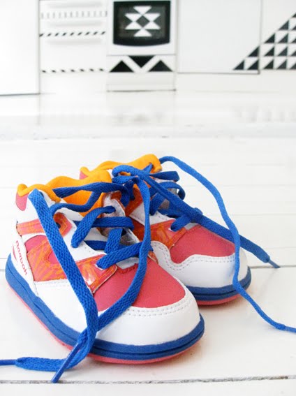 Uudet Reebokit saapuivat. Jo toisen kerran. Thänk kad se koon vaihto on helppoa Bradosilla nimittäin ekat oli noin 4 cm liian suuret. Hyvä äiti. Sitten kun oikein suurentelijoiksi käytiin, niin tehtiin maailman pisin lippunauha V:n huoneeseen. 22,5 m tuli meidän tarvikkeista. Riittää risteilemään hienosti huoneessa. Kiitos Mette ideasta!