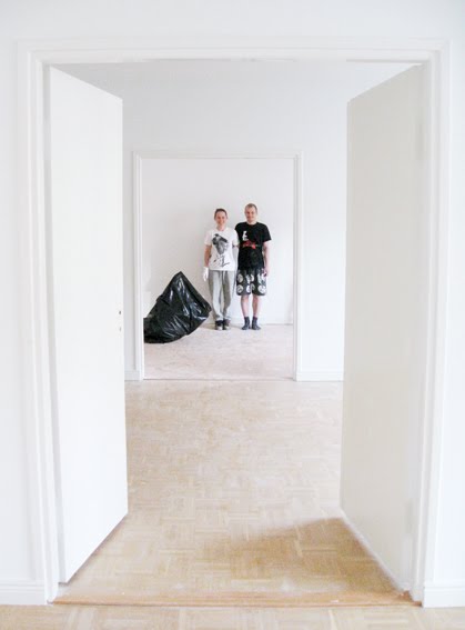 Walls – painted, ceiling – painted, door frames – painted, window boards – painted. Floor grinder comes tommorrow.
