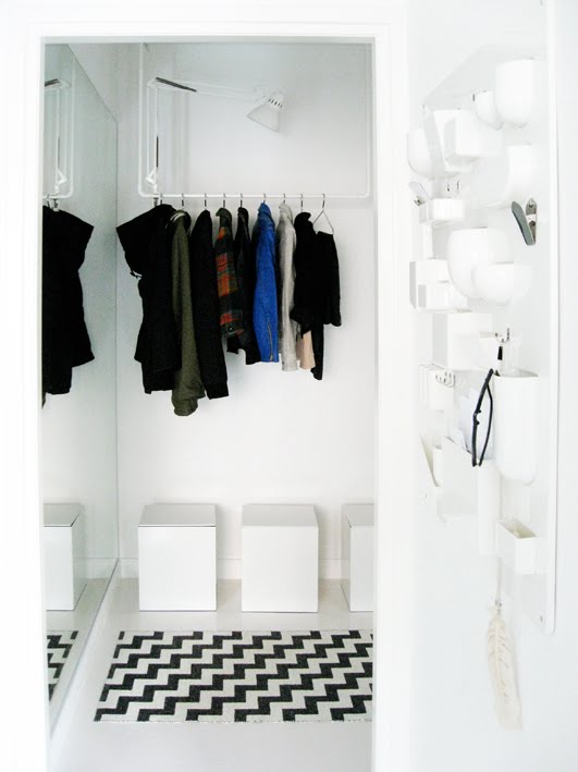 9. tyylikäs kokonaisuus! naulakkoratkaisu muistuttaa kovin helsingin wunder- vaateliikkeen ideaa esillepanosta.