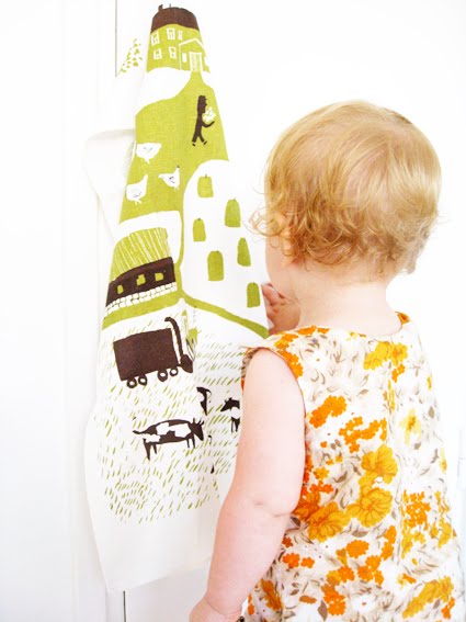 Farm-subject continues. I had a cleaning day and finally got these beautiful Kauniste kitchen towels to use. Varpu can learn ammuu-u-u and bää-bää-bää from it and after it we can start to learn kitchen words.