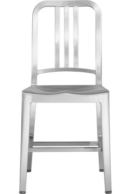 Tiiättekö te tän Navy Chairin? Emeco on alkuaan valmistanut niitä jo 40-luvulta ja käsittääkseni siis ameriikan merivoimien käyttöön. Ne on alumiinia eli kestää vettä, suolaa ja säänvaihtelua. No nyt sitten tätä klassikkotuolia saa uudesta matskusta tehtynä. Coca Cola on tehnyt tollasen kierrätysmallin, toiseen menee tölkit – alumiiniahan nekin- ja toiseen muovipullot. Hyvä kokis. Paljokohan maksaa? En tiiä. Ne alkuperäiset Emecot maksaa 455 e/kpl (harjattu alumiini) ja 1265 e (kiillotettu). Tästä sitten päästää suomalaiseen versioon. Piipahdin tänään Iskussa ja siellä oli tämmöttisii mustia Sees-tuoleja. Itse asiassa luonnossa jotenkin paremman näköisiä kun tuossa kuvassa. Tuli vaan niistä samantien mieleen nämä Emecot. Nuo ei maksa kuin 109 e/kpl.