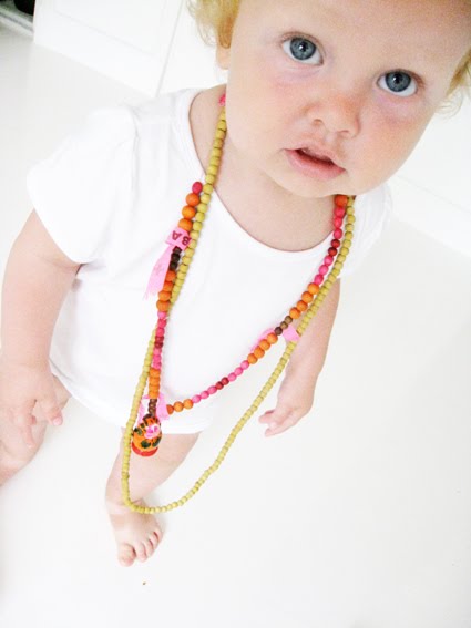 Meillä on alkanut koreilukausi. Kaikki helmet, vyöt ja rannekorut täytyy saada päälle ja sen jälkeen peilin eteen keimailemaan. Mistä ihmeestä ne oppivat (öhöm). Heh. Tämä lienee alkusoittoa, tervetuloa prinsessahömpät.