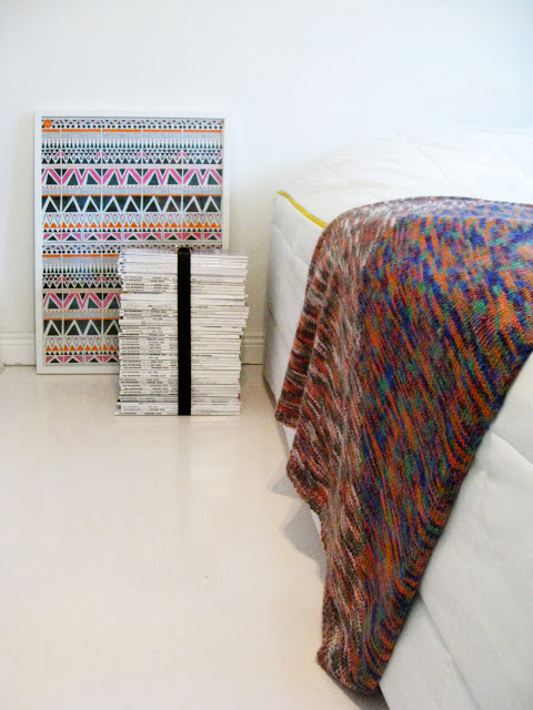 Kehystin Sanna Annukan lahjapaperista ison taulun, jonka isi Varpunen sijoitti rennosti seinää vasten yöpöydän taakse. Näyttää hyvältä siellä. Sain tänään toisenkin taulun, josta puhkun intoa ja näytän livenä teille heti, kun sen saan kotia asti. Weekdaycarnival toi uunituoreen vedoksen tänään töihin ja voi että ne hänen julisteet ovat hienoja. Tilatkaa hyvät ihmiset ennen kuin loppuu. Minulle tuli Yhdeksän, näätte sen täällä ihan pian!