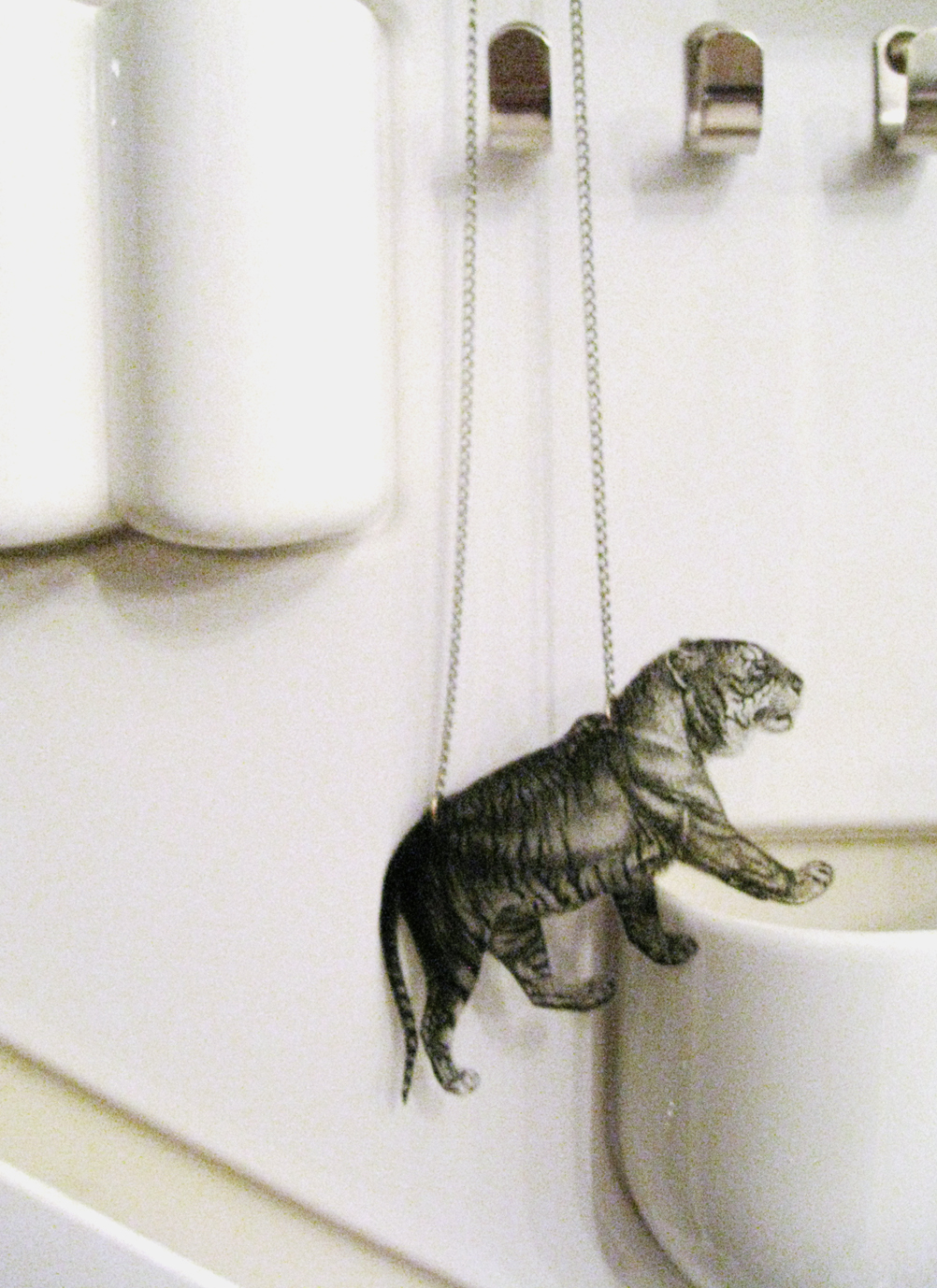 Kuvasin myös vanhan korun, jonka olen askarrellut joskus aikoja sitten. Perhosen lisäksi minulla on tuollainen tiikeri. Voimaeläin, sanoisi hippi.