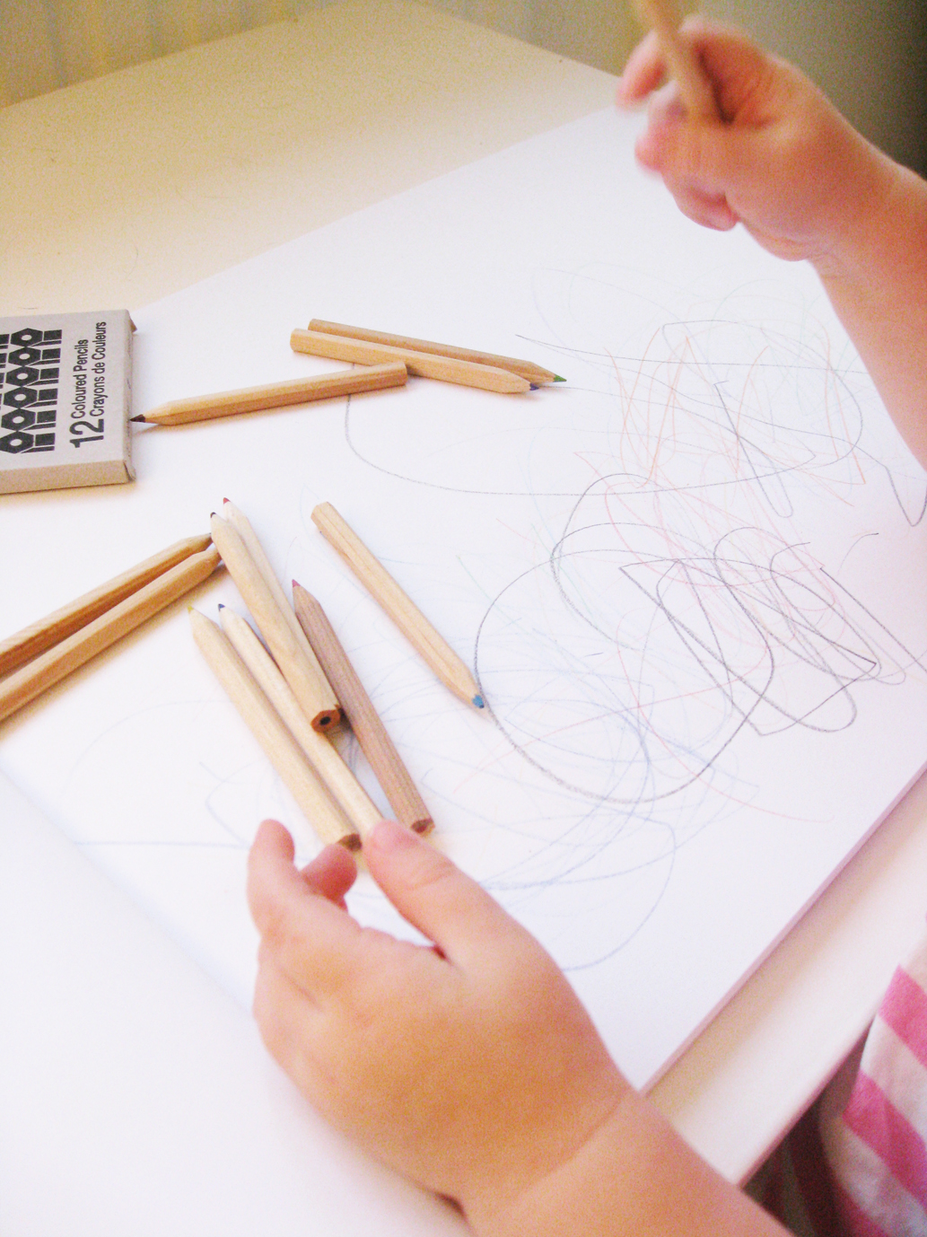 V has now the fifth day in horrible fever. Some virus and just have to wait till it’s gone. We have watch Moomins and Barbapapa about 100 times. And drew a lot. I’m so proud of V. She’s 1 y 5 month and draws circuits and says Ball, ball. Wow, yes those are balls! Great I think!