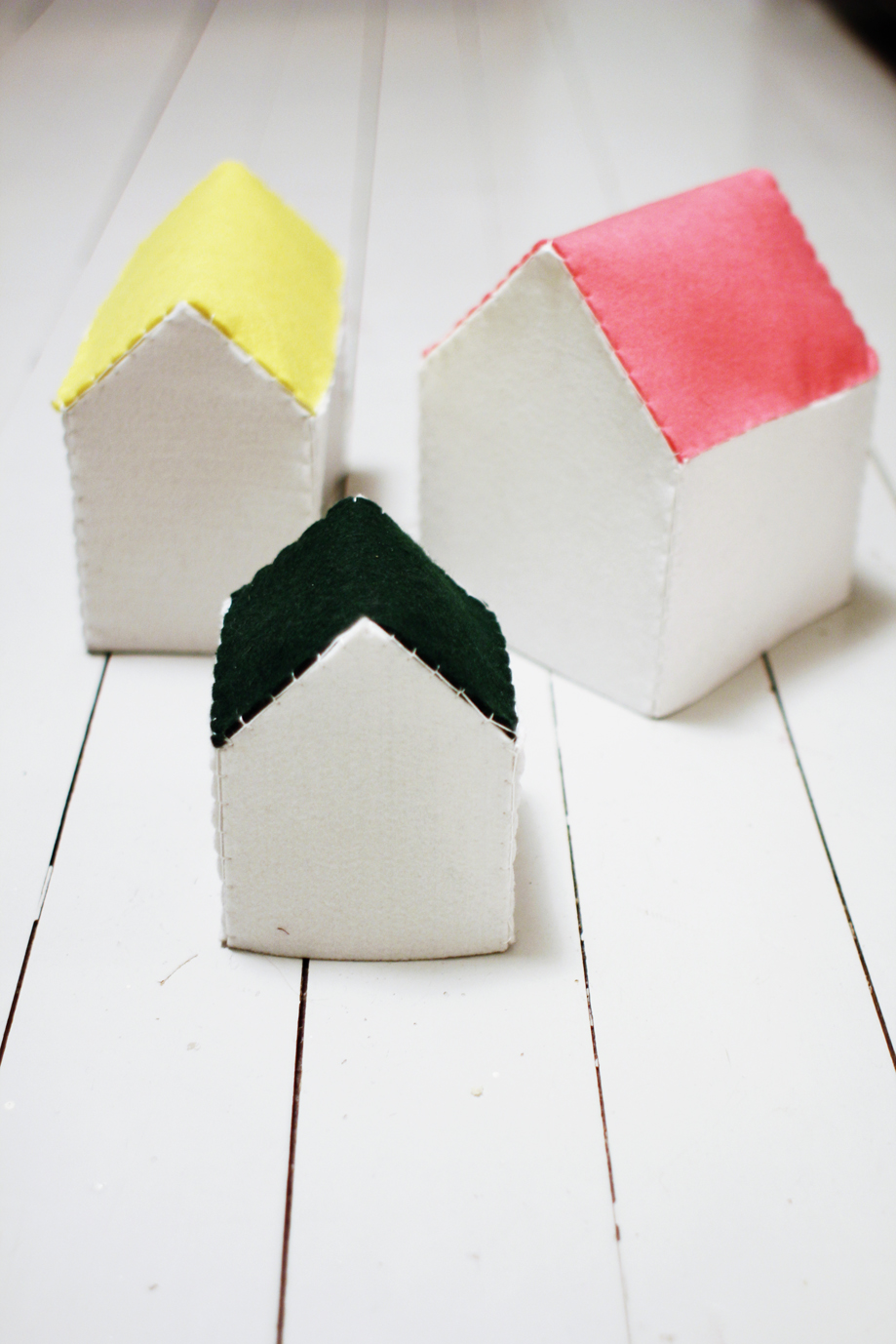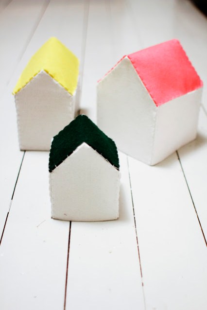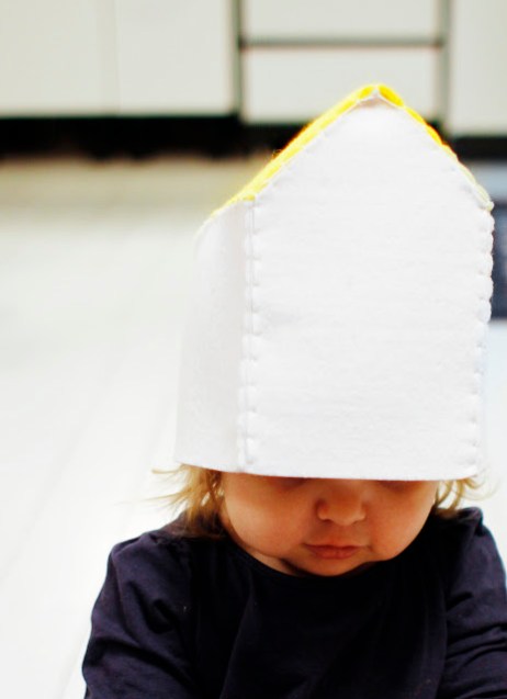 I made few felt houses to V. She doesn’t play with them, she prefer the use em like a hat.