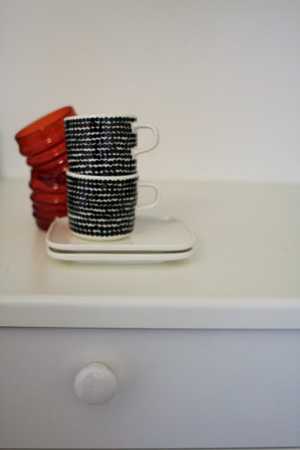 Terveiset uudesta kodista. Tuli ex tempore muutto ja nyt ollaan taas eri kodissa. Pienessä, mutta valkoisessa, hyvä niin. Tavaroita meillä ei ole, äidiltä haalittiin matto, kaverilta patja ja kiitos Marimekon lahjakassin sisällön – meillä on pari astiaakin. Putkiremontti on katastrofi. Kerron, kun toivun.
