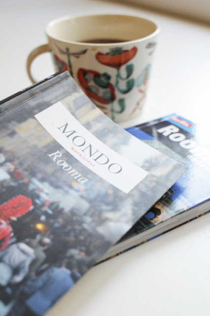 Huoh. Ostin vuosi sitten jouluna miehelleni Rooma-kirjan,lahjaksi. On suunniteltu sinne matkustamista 1-vuotis hääpäivästä alkaen mutta aina on tullut jokin este, jokin muu pakollinen oncein a lifetime- matkasuunnitelma. Ensi keväänä me mennään, 10-vuotis hääpäivän kunniaksi. Se on jo päätetty.