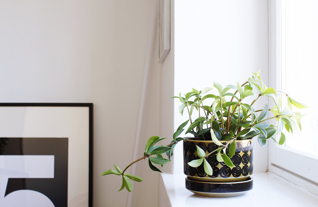Tädättädää. Meille on saapunut ensimmäinen viherkasvi. Ei niin viherkasvi-ihmiselle tämä on aimoloikkaus. Kaikki alkoi ruukusta, joka löytyi Laitilan kirpputorilta 4 eurolla. Vanhalle Arabian Kerä-ruukulle naurettava hinta, mutta sopi meille paremmin kuin hyvin.