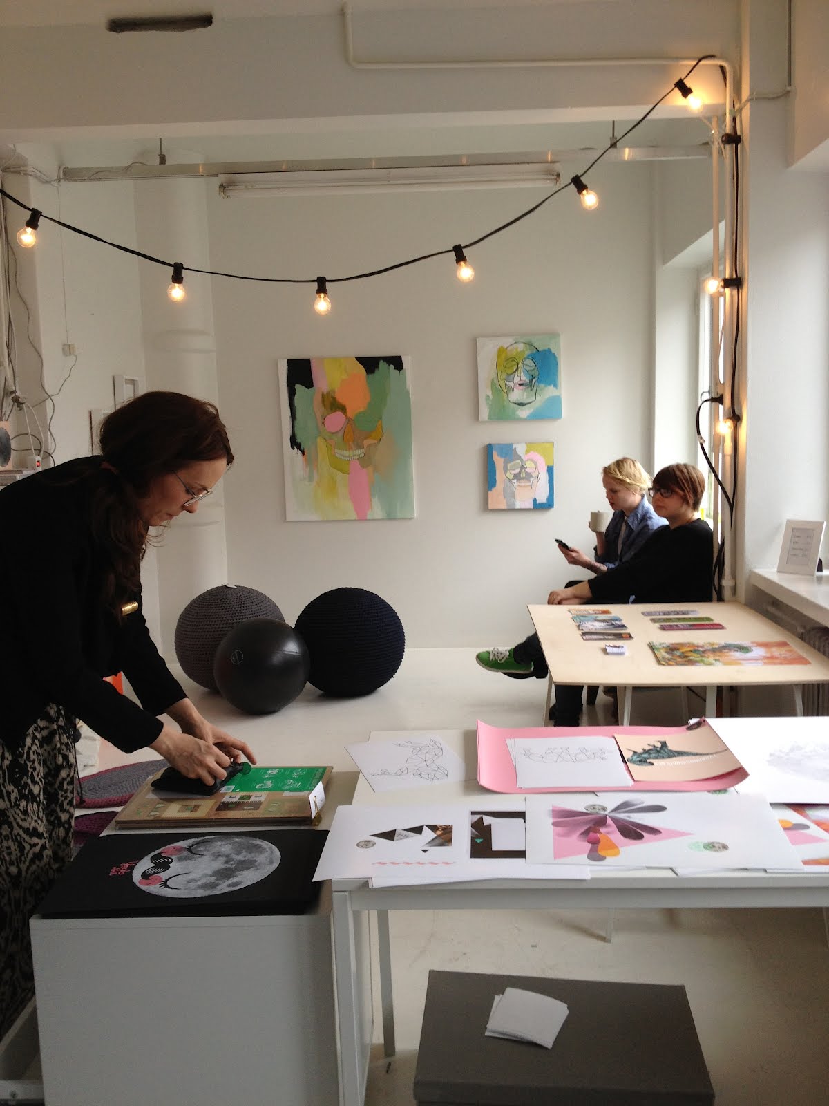 Voi kun en päässyt, vaikka olin suunnitellut! Saisiko kysyä, kenen nuo ihanat taulut tuolla kuvasi perällä ovat?