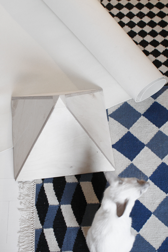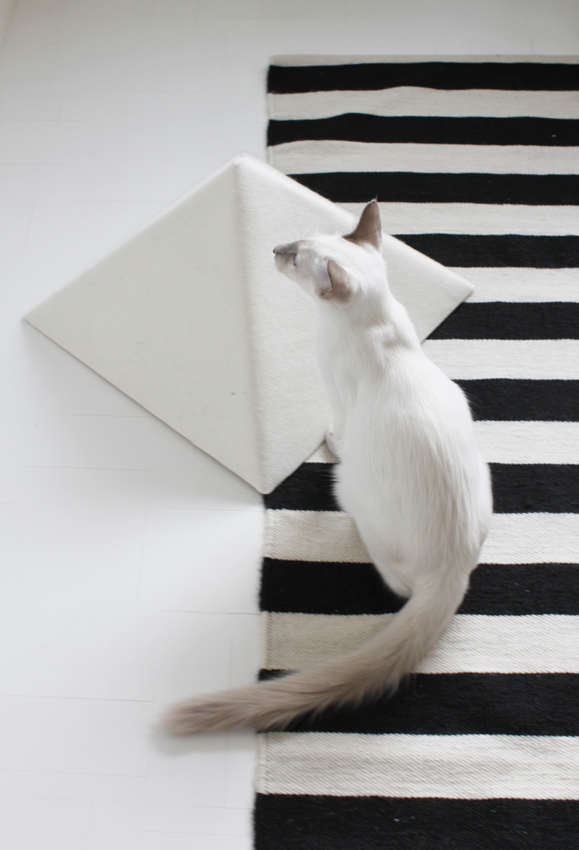 Pääsiäisloma tuli kuin tilauksesta roikkuviin kotiprojekteihin. Muuton huopainen Restore-säilytin on saanut kyytiä kynsiltä, joten nyt tartti jo tapahtua. Tehtiin Melvinille tuollainen raapimispyramidi vanerista ja huovasta. Kotimainen Koskenpään huopatehdas on oikea aarrearkku kaikkeen huopailuun.