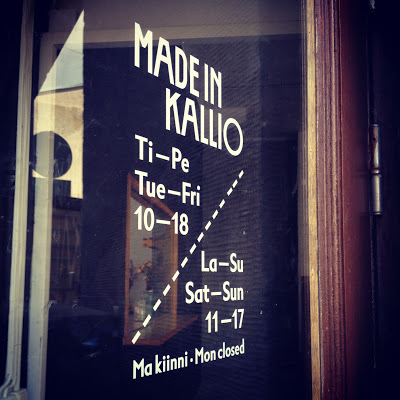 Piipahdimme eilen nopsaan Made in Kalliossa ja paikkahan oli hehkutustensa väärti. Nuorten suunnittelijoiden tuotteita, joita valmistetaan siinä hoodeilla ja kahvia kanssa 🙂 Oikein oli hyvännäköiseksi paikka laitettu, 10 pistettä seinälaatoitukselle ja säilytetylle tarjoilutiski-ikkunalle. Ens kerran uudelleen kahvien kera.