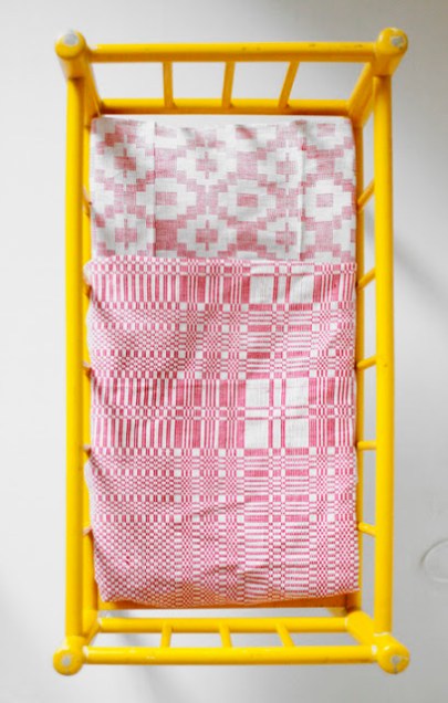 Upea yhdistelmä tuo keltsu sänky ja kulahtaneen punavalkoiset lakanat – jotain retroa ja jotain romuromanttista, täydelleen in.