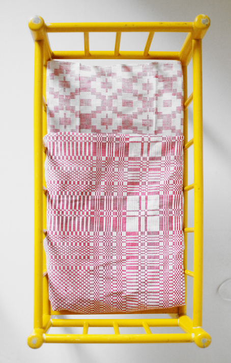 Upea yhdistelmä tuo keltsu sänky ja kulahtaneen punavalkoiset lakanat – jotain retroa ja jotain romuromanttista, täydelleen in.