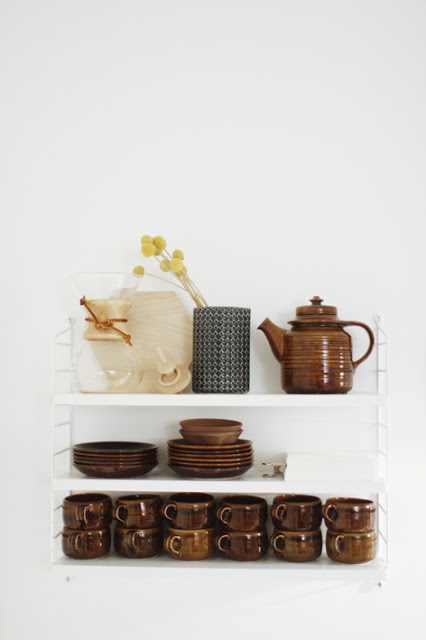 Aika yllätyksenä tuo ruskea tuli tännekin, he hee. Mutta juuri tuo käsityömäinen jälki ja ei niin tasalaatu viehättää – sellaista ei saa uusissa astiasarjoissa.
