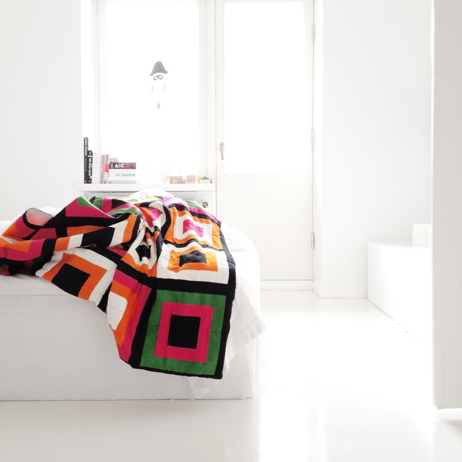Hei, ei vitsi!! Luin eilen meidän Sato-asukkaiden Kotona-lehteä, ja tää kangas iski heti silmään, ja bäng! Meillä oli tätä Pritsiä mökillä seinävaatteena minun sängyn vieressä, pienenä tuli siis useasti nukahdettua päikkäreille tätä kangasta möllöttäen. 😀 sitten teininä kun sain oman huoneen, halusin välttämättä tän taas seinälle sängyn viereen. Siinä oli hyvä käydä teiniangsteissa nukkumaan, kun mua ärsytti, miksei noissa neliöissä ollut fiksua kaavaa, vaan kaikki oli epäjärjestelmällisesti väritetty eri lailla.. mutta siis, kankaan nimi on Pritsi, tekijä Marjatta Metsovaara ja Tampellan tuotantona tehty 80-luvun alussa. Kaikkea hyvää sulle ja toivottavasti peiton alla tulee otettua makoisia torkkuja:)
