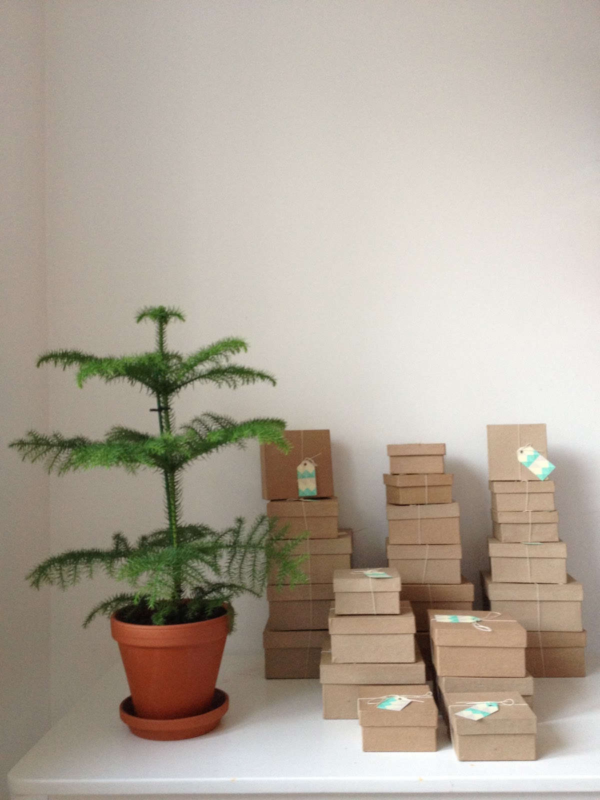 Tättädää, nyt ei oikein pyyhi tällä blogisaralla. Valoa tulee ikkunoista, mutta mullapa ei ole kameraa. Ja kone, jossa photari, on sekin työhuoneella. Suokaa anteeksi tämä puhelinkuvailu, nyt ei rahkeet riitä parempaan. Asia kuitenkin tärkein ja ideaa jakaminen. Joulukalenteri valmistui ja nyt on 24 tuollaista pikkupoksia odottamassa kuun alkua. Laatikot siis löytyi Sinellistä, sipasin kiinni kalalangalla ja kortit askartelin RK Designin “aiemman tuotannon” papruista.