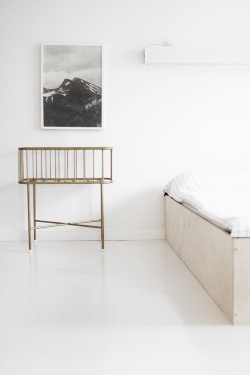 Your bedroom is amazing. Love the brass crib and the plywood bed!