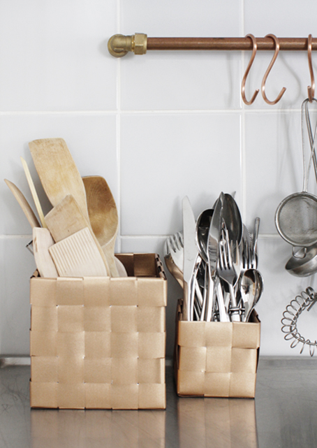 Viime mökkiviikonlopulta oli vielä kameralle jäänyt nämä vinkeät korit. Anna Nygård kierrättää vanhoista sälekaihtimista tuollasia pärekorityylisiä säilytyskoreja ja sain häneltä lahjaksi muutaman pikkuvasun – passaavat meidän mökkikeittiöön superhyvin. Nyt on kapustoille ja aterimille korit, kiitos! Tovi sitten saapuivat myös nuo kupariset S-koukut, jotka ameriikoista asti tilasin. Aika liikkis tekijä, käykää tsekkaa sivut.
