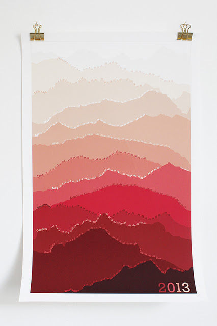 Pahvirullien uumenista löytyi tänään tällainen. Onneksi nyt eikä vuoden lopussa. Perheen arkimenoille ei kirjoitustila taida ihan riittää, mutta tästä Pam Lostraccon Mountain-kalenterista voisi tulla hyvä synttärikalenteri.