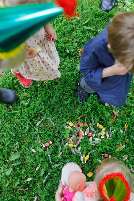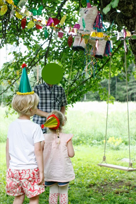 Niin kauniit kesäjuhlat, hauska toi pinata…en osannut tehdä sitä koukeroa ännän päälle 😀