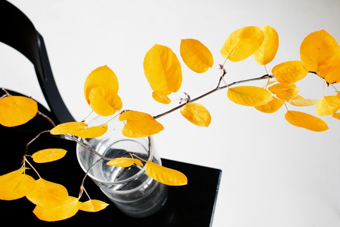 Syksyn vihaaja täällä morjens. Sen kun olen ehinyt syksyä parjata, parin päivän päästä nauran yksikseni ääneen Töölönlahdella, kun se väriloisto vaan on niin valloittava. Kuin sellaisessa keltaisessa kuplassa olisi. Kävin siinä ilmasessa kukkakaupassakin ja taitoin oksan maljakkoon (ja nyt kaupungin puistotoimen sakkoja odotellaan).