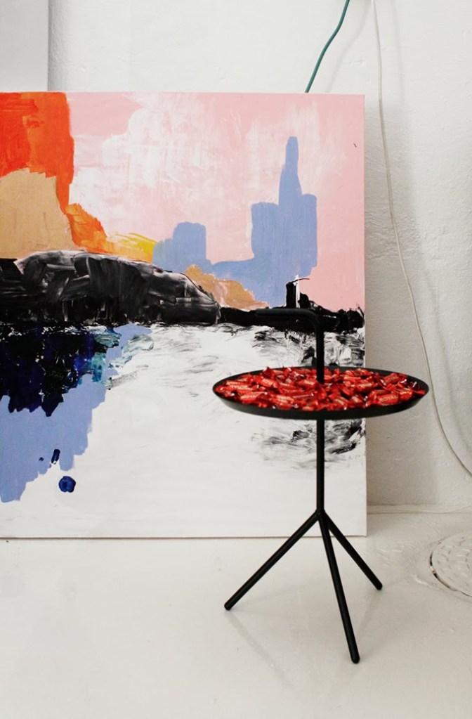 Artekin Mike Meire -jakkarat, Hayn DLM-pikkupöydät, Normann Copenhagenin Block-tarjoiluvaunu, Muuton Around-sohvapöytä, Hayn Dot -tyynyt ja Normann Copenhagenin tilkullinen koristetyyny, Ratzerin Straight Twill -raidalliset viltit, Hayn Lup Square -kynttilänjalat, By Lassenin kupariset Kubus-kyntteliköt, Menun POV-kynttilänjalat, Tom Dixonin Etch-tuikkukupit, Hayn Kaleido-tarjottimet, Architectmaden Bird-tammilinnut, värikäs Otto-lintu ja puuapina, kaikki Finnish design shop.