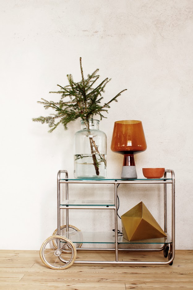 Copper and terracotta have been in the air for a while now so it is no surprise that the beautiful cognac brown glass falls naturally into this category. And better yet, combine it with concrete and you’ve got the magic! Magnus Pettersen has designed a new Leimu light for Iittala, available in 20 cm and 25 cm height. Do go check out his website too, to see the awesome concrete desktop accessories he has designed. The life of my Aalto vase has proceeded onto the kitchen countertop, where it makes a perfect place for all the scoops and spoons. Searching for more purposes of use, I put all the Christmas spices into Iittala boxes and they seem to fit the purpose quite well.