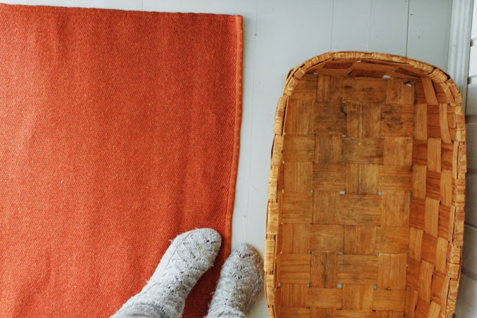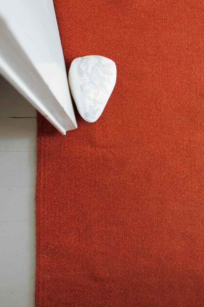 Nyt se luvattu mattolöytö viime viikonlopulta. Kerroin siinä voittomattopostauksessa, kuinka meillä on ollut etsinnän alla jo pidempään vanhat kunnon kudotut villamatot. Usein ne ovat liian tummia ja tunkkaisia, mutta nyt löytyikin mökille aivan täydelliset poltetun oranssin väriset. Käyvät nappiin tuvan Rata-tyynyjen ja värimaailman kanssa. Kaksi kappaletta ja 6 e kipale. Priima kunto, joten ei pöllömpi löytö. Pidetään siellä täällä erillään tai joskus tuvassa kaksin kappalein vierekkäin.