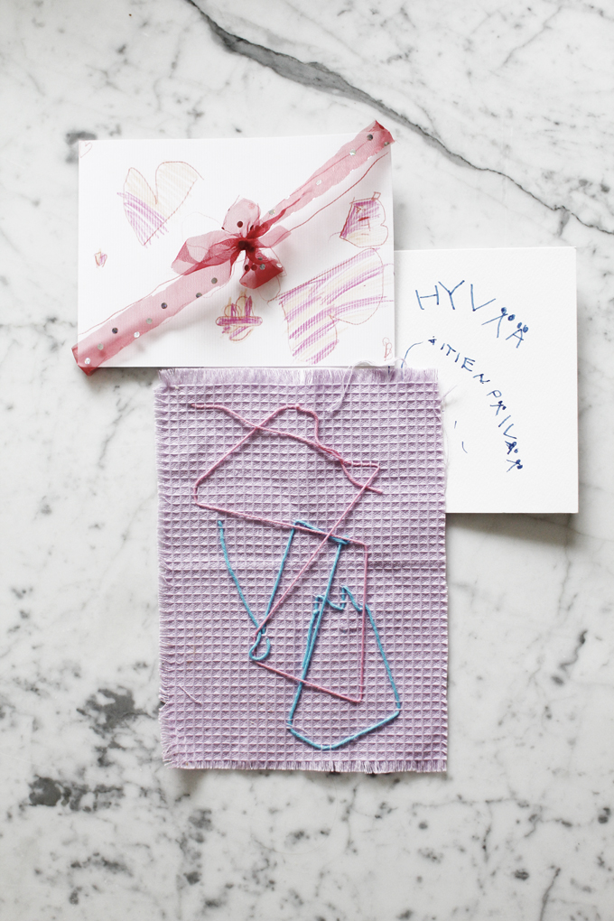 Viikon kruunasi aamu. Voi mahdotonta sitä astioiden kilinää, jännitystä ja supinaa, lahjojen ja korttien määrää. Itku silmässä katselen jokaista värkättyä korttia, ensimmäistä pikkusormin näperrettyä liinaa ja ilmapallopäätä. Jälkimmäinen täysin oman mielikuvituksen tuotetta. Ilahduttaa kuulemma äitiä. Niin mahtava!