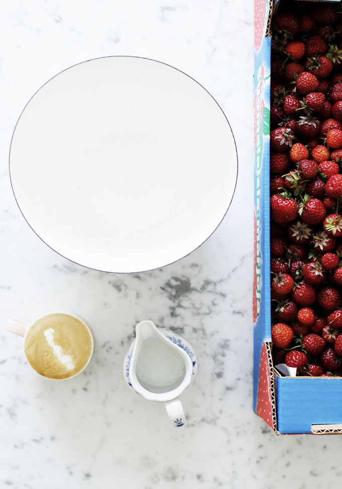Eilen ystävä ehdotti, että lähdettäisiinkö poimimaan mansikat pakkaseen. No aamulla nokka kohti Nurmijärveä ja reippaat äidit ja lapset pellolle. Puolen päivän jälkeen takas, pakastepussien ostoon ja eikun perkaamaan. Siinä pistin lahjakahvitestin käyntiin, perkuutarvikkeet pöytään, ikkunat selkosen selälleen ja Radio Helsinki säesti kolmituntisen. Kiitos kahvi oli hyvää ja virkistävää, salettiin parempaa vielä kunnon laitteella, mutta kyllä tuo retropeli piti taasen tunnelmasta huolen. Kaupunkikesää parhaimmillaan. Nyt on meidän minipakkanen täysi, sormet kipeinä ja niskaakin polttelee mukavasti. Hyvää yötä.