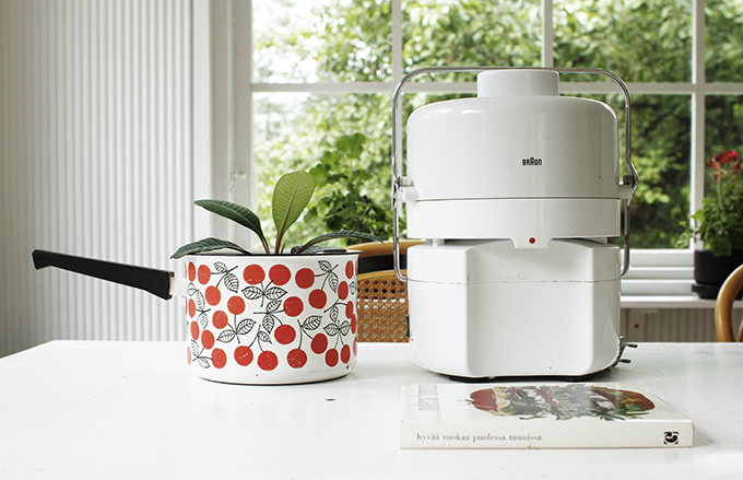 Esteri Tomulan Kirsikka-kasari (Finel) ja Braunin mehulinko ovat oivat löydöt mökille, samoin tuo supermakeakantinen keittokirja 70-luvulta. Tästä on hyvä jatkaa.