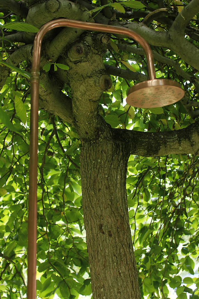 Meidän pihassa on tuollainen riippujalava. Viritettiin sinne alle pihasuihku. Minusta maailman kaunein suihkukoppi. Ja tunnelmallisin.