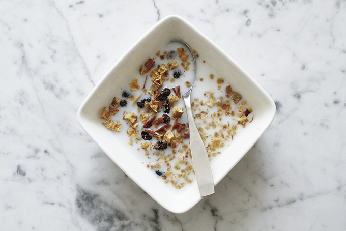 Mä olen vähän hidas näissä blogeissa leviävissä ruokatrendeissä. Tai ehkä se on tämä elämänvaihe, että asiat tehdään vasta sitten, kun niille on tarve. Ei paljoa ennätä fiiliskokkailemaan. Mutta siis pian alkavia päivisaamuja helpottamaan tein elämäni ekakertaa itse mysliä. Ja mikä minusta tässä on parasta, on nuo kaapissa lojuvien pussin pohjien kierrätys. Leivonnasta jääneet kookoshiutaleet, mantelilastut ja kuivuneet muumirusinat uppoaa joukoon täydellisesti!