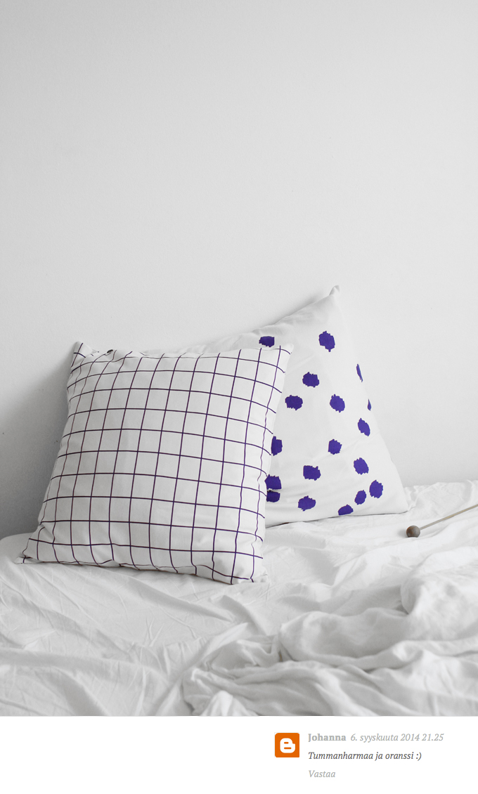 Onnea Johanna, jonka lempivärit ovat tummanharmaa ja oranssi. Nyt sinulle tulee sinistä ja valkoista 🙂 Pistä yhteystietosi meiliin, niin laitetaan palkinto matkaan (upouudet, ei nuo meillä jo nukutut).