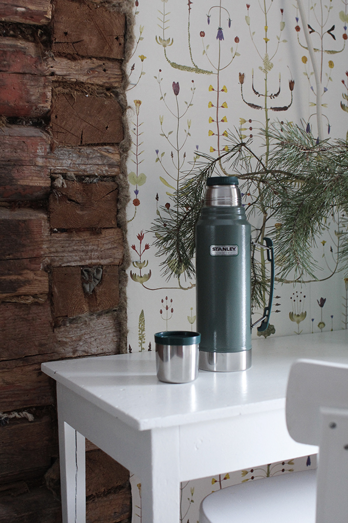 Täällä ollaan päivää ennen pukkia. Saatiin pieni lumipeitekin, joten eiköhän tästä tunnelmaan. Vierashuoneiden viileät lakanat on vaihdettu ja patterit pöhisevät. Mummo ja pappa valikoivat tuon uusimman huoneen. Minun ostama isänpäivälahjakin oli otettu käyttöön. Tuo Stanleyn vasaralakkainen termari on niin hieno – ja vain parasta papalle. Niin ja alkusyksystä postimies toi Kati Kovácsin Deltan kaksoset – sattumaa vai täsmälahja meidän sarjakuvakeräilijän huoneeseen. Sekin oli luettu ja oli kuulemma ollut hyvä, kiitos WSOY.