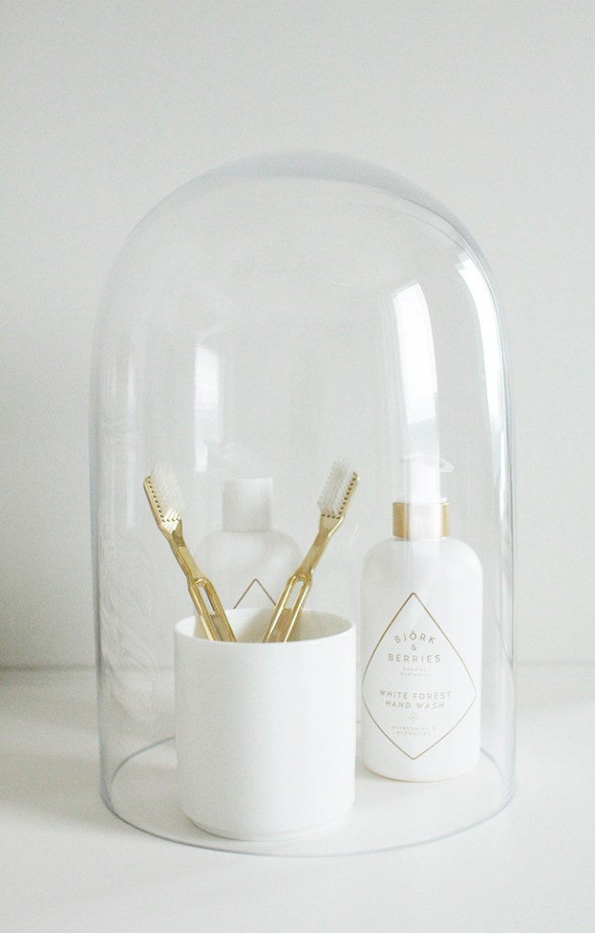 Kerros-pöytähylly ja valkoiset Teema-astiat// Iittala