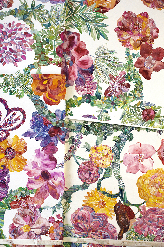 Ja kun tuota vihreätä jo pistettiin likoon West elmiltä, niin otetaan heti perään oikein kunnon harppaus kesään. Vierailimme eilen Libertyllä ja tutustuimme heidän uusimpaan kokoelmaan ikonisen Emma Mawstonin johdolla. The Secret Garden oli tyypillisesti täynnä toinen toistaan ihanampaa kukkakuosia, mutta se mikä tässä koko hommassa minut yllätti, oli tuo rehellisen perinteisen piirtämisen määrä. Voitko uskoa, että nuo kankaat ovat edelleen käsin piirrettyjä ja väritettyjä, photaria ei prosessissa juurikaan käytetä. Miten hienoa käsityöläisyyttä – ja samalla jotenkin just niin englantilaista. Ja Libertyllä on myös muuten tapetteja. Muutama iski niin, että olisi jälleen hyvä syy rakentaa lisähuone mökille.