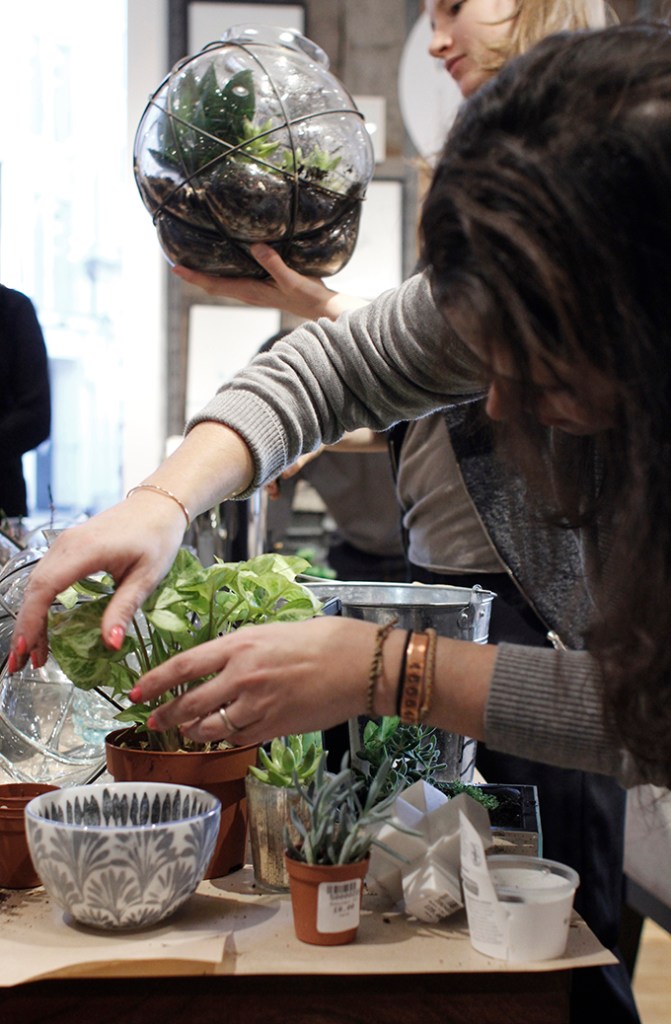 Jos päästiin tuolla Folklorella rakentelmaan kuvia, niin West elmissä työnnettiin sanamukaisesti kädet multaan. Myymälä järjestää tuon tuosta erilaisia työpajoja ja nyt kevään korvilla meille oli järkätty tuollainen terraariotyöpaja. Saatiin koko kaupan valikoima käyttöömme – pääasia, että teimme jonkin sortin istutuksen ihan mihin tahansa heidän tuotteistaan – kulho, laatikko, rasia, vaasi, maljakko, what ever. Huvittaviahan noista tuli ja vielä huvittavampia ovat nuo kuvat, joita koitin myymälävalaistuksessa ottaa. Pardon se, mutta nauttikaa kevään fiiliksestä!