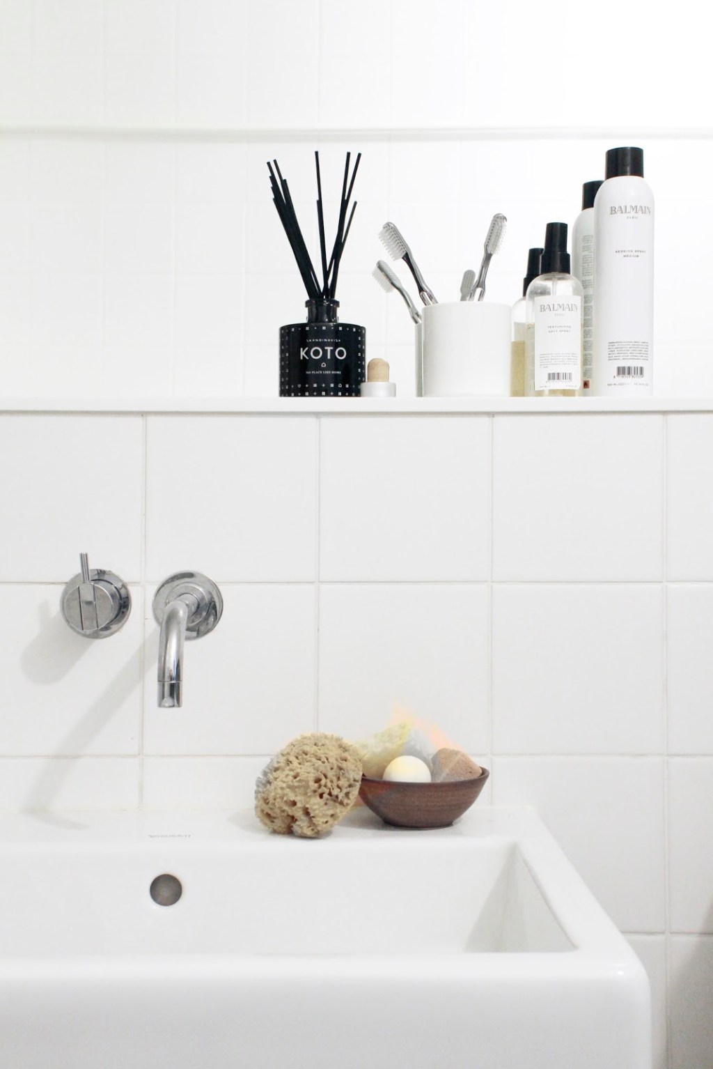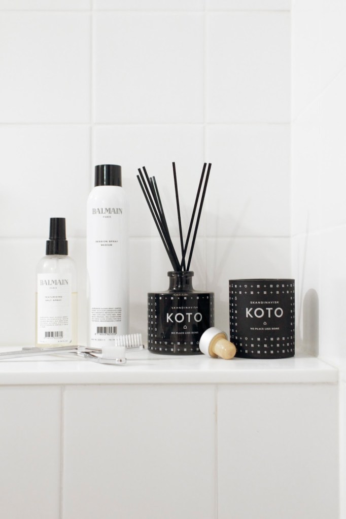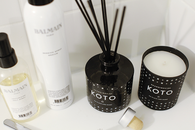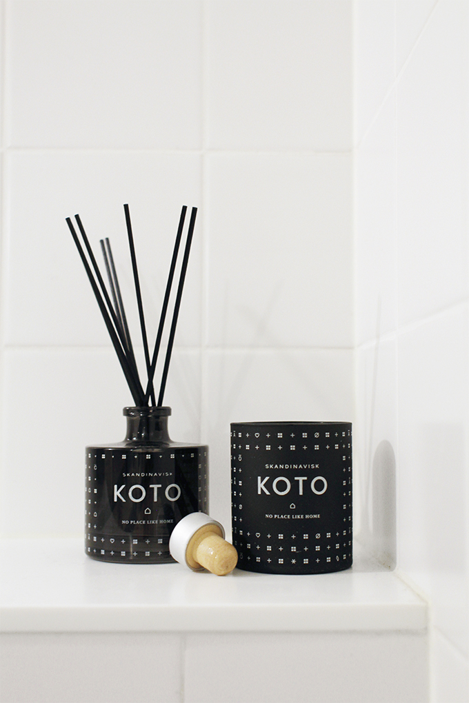 Kirjoitin aiemmin jo Skandinaviskin uudesta KOTO-tuoksukynttilästä, siitä jättiläisestä jonka polttoaika oli jotain 75 h. Tuohan on kehitelty yhdessä meidän Design Bloggers Tourin ja Skandinaviskin kanssa. Jos tuoksujen vaihtelu tiuhemmin kiinnostaa, nyt KOTOsta on tullut myyntiin tuo perinteinen pieni koko sekä tuoksutikkusydeemi. Meillä pääsivätten kylppäriin.
