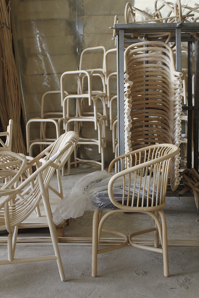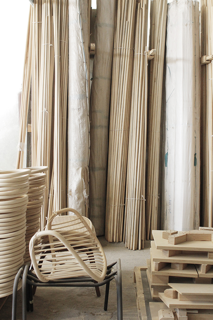 Rottinkia, ah! Pääsimme toureella vierailemaan Valenciassa Expormimilla, yrityksellä joka valmistaa sisä- ja ulkokalusteita ja ennen kaikkea tyylikkäitä rottinkimööpeleitä. Showroom sijaitsi pienessä Moixentin kylässä Valencian ulkopuolella vanhassa postirakennuksessa. Sieltä tuo meidän nasta ryhmäkuva. Ihan vieressä on tehdas, jossa kaikki tuotanto tapahtuu. Pääsin näkemään kuinka rottinkikalusteet valmistetaan ja se oli muuten mahtava kokemus. Yritin saada siitä rottinkipuikon taivutuksesta myös shortin videon, joka löytyy IGstä. Rottinki siis kuoritaan ensiksi ja kiiltävä pintaosa käytetään sellaisen perinteisen punosistuimen valmistukseen – se klassinen venetsiatuolien ja Thonettien ristikkoverkko, tiedätte. Kuorittu rottinkitanko taasen pidettään jonkin moisessa höyryuunissa, jonka jälkeen se on kuin sulaa vahaa. No vähän liiotellusti. Mutta käytkää katsomassa video. Ja toisessa pätkässä näkyy myös kuinka jokainen naruselkäinen ulkosohva ja pikkutuoli punotaan ihan käsin, ei mitään kudottuja verkkoselkiä tai muuta. Mä niin arvostan vielä tuota kotimaassa valmistusta – totally handmade in Spain.